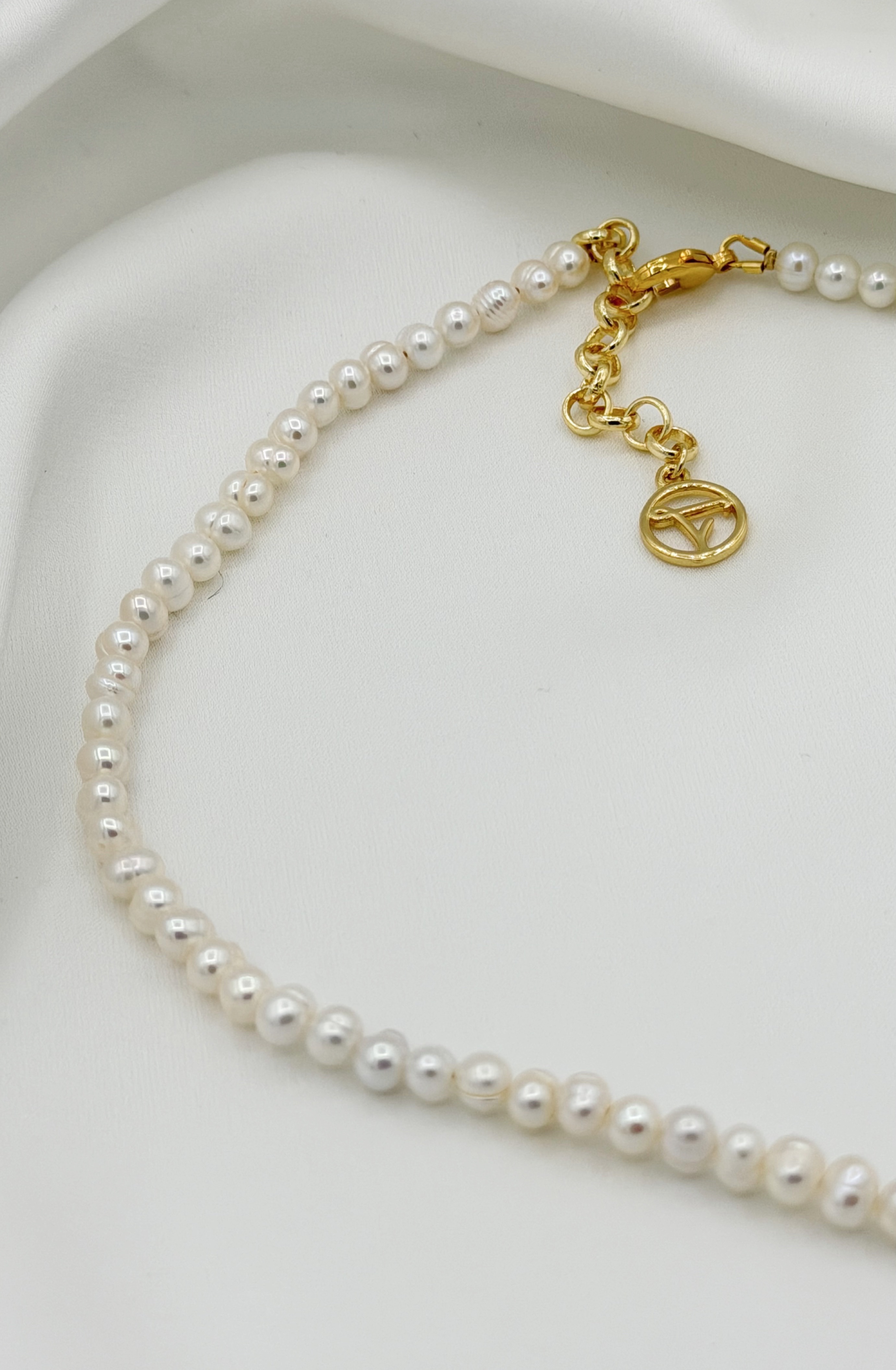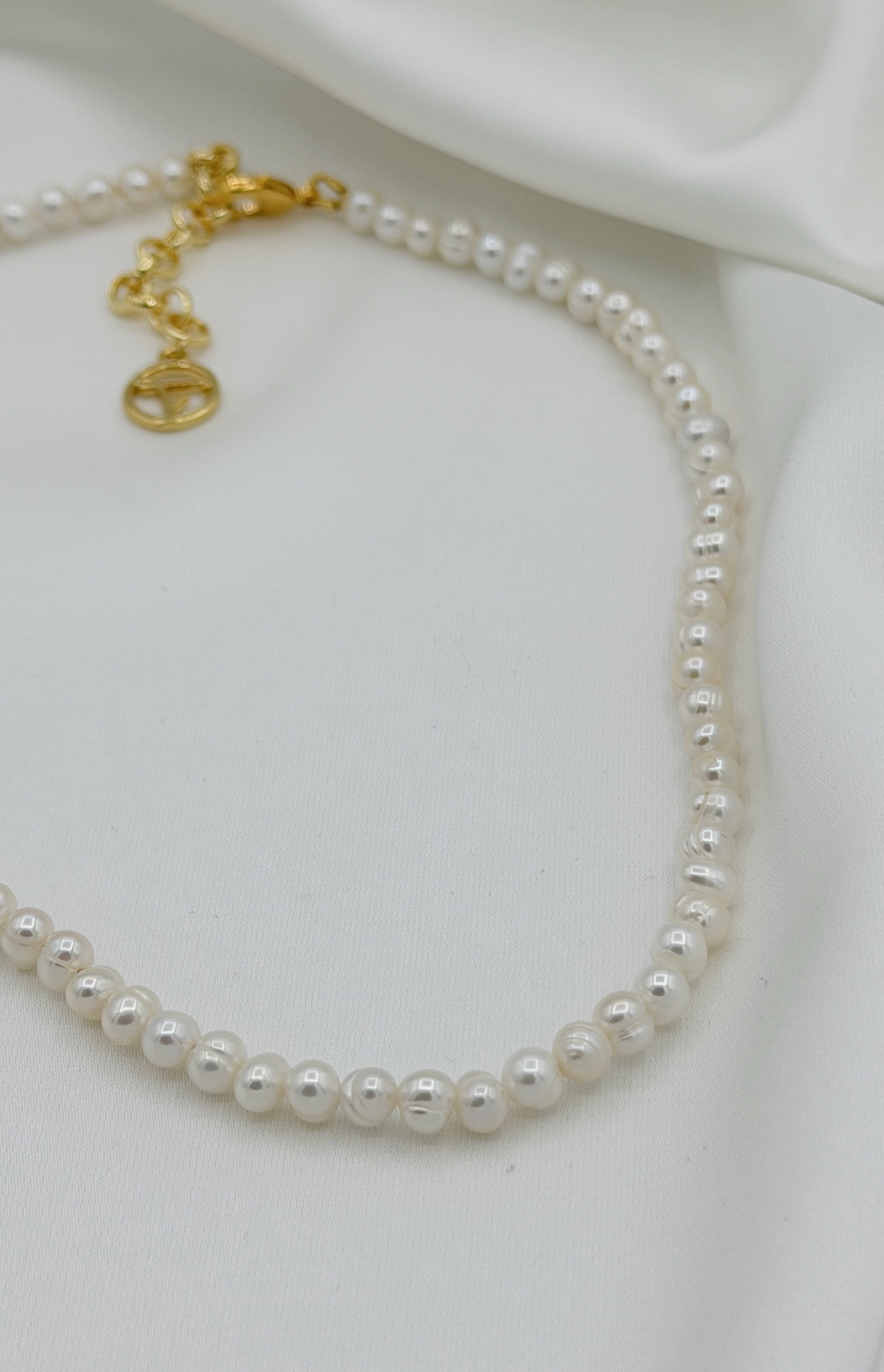 Колье чокер из речного натурального жемчуга в округлой форме.