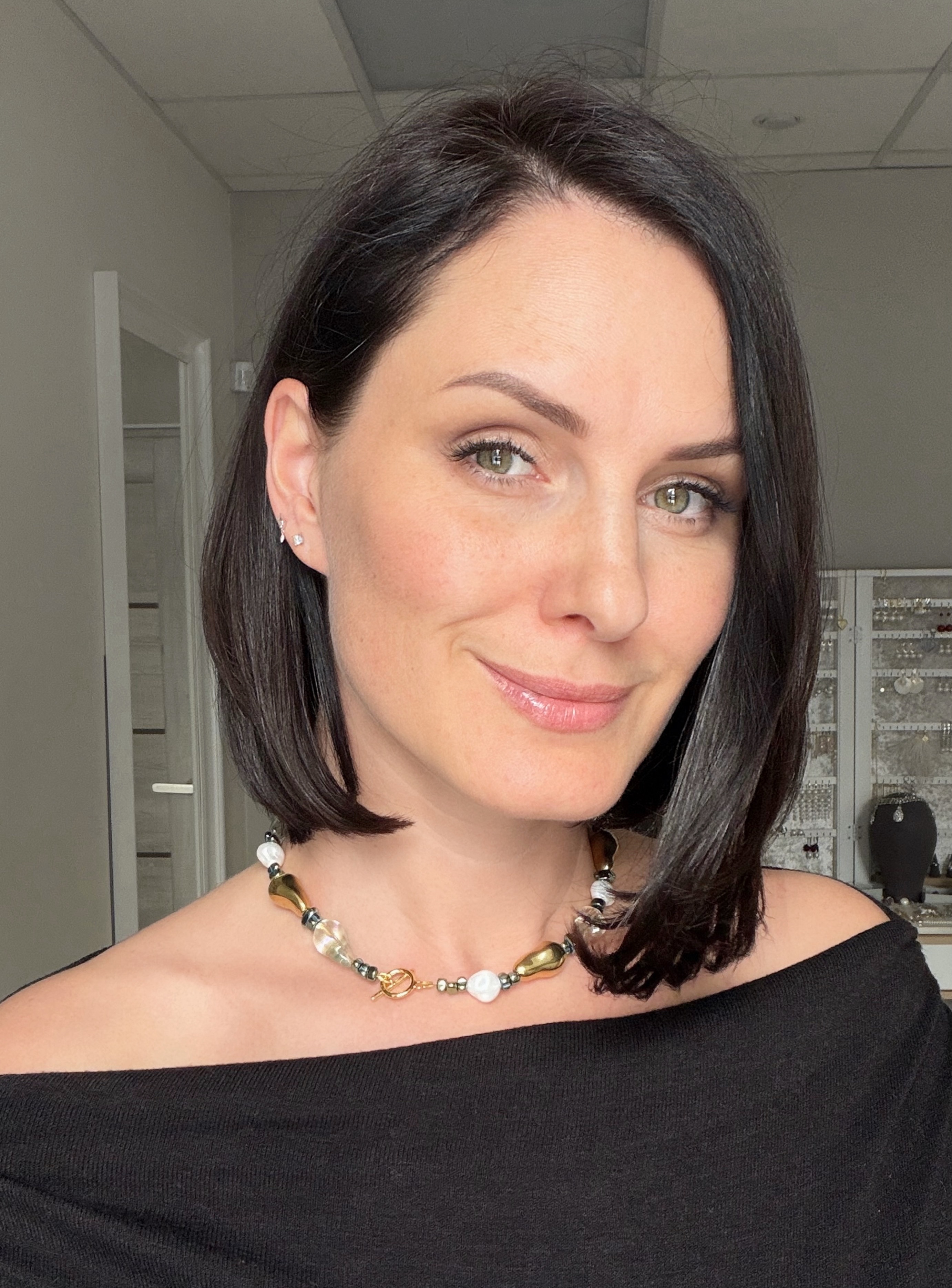 Колье «Гармония» - украшение о балансе контрастов и мягкой силе сочетаний. В нём соединяются тёплое золото и прохладное перламутровое сияние, прозрачность хрусталя и глубокий металлический блеск гематита, создавая ощущение цельности и внутреннего равновесия.