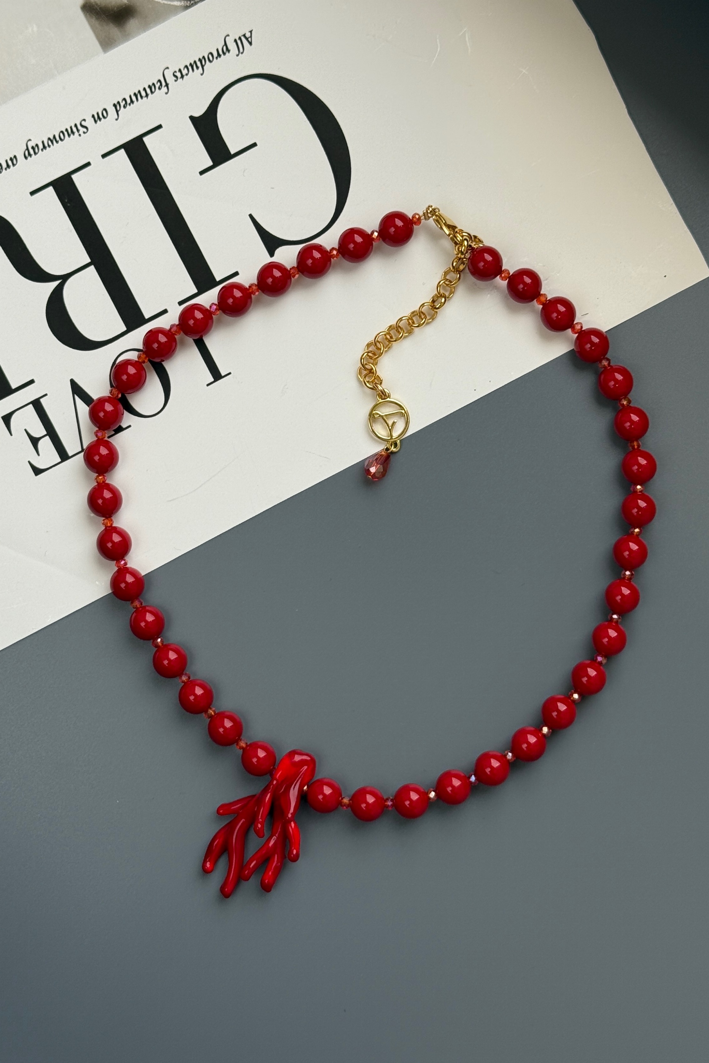 Это амулет внутренней силы, созданный напоминать женщине о её природной энергии. Каждая алая бусина словно капля живого огня, который горит в сердце, согревает душу и освещает путь.