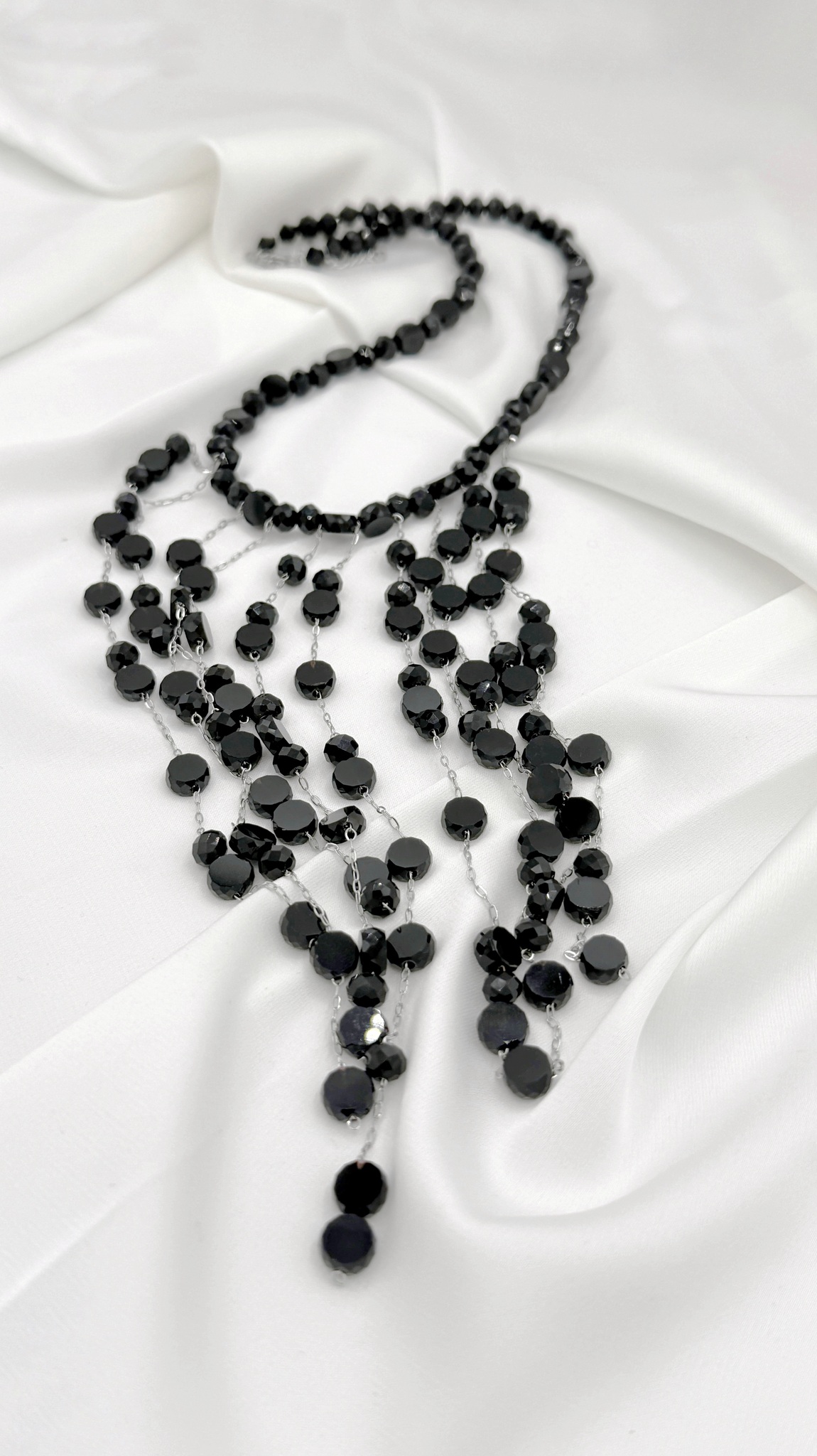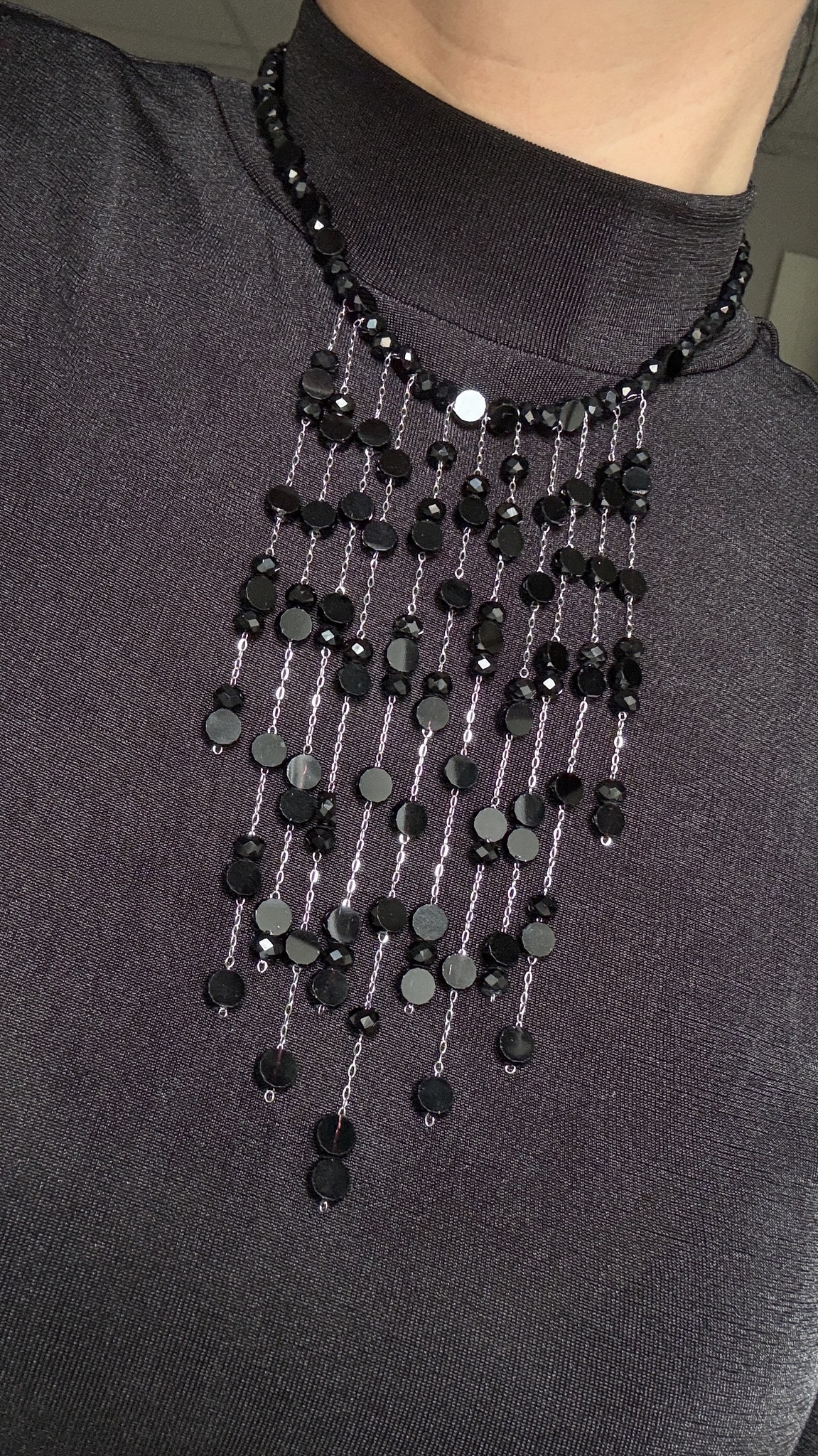 Это колье создано, чтобы дарить вам настроение света и радости каждый день. Легкие нити, усыпанные хрустальными бусинками, переливаются мягкими бликами при каждом движении, создавая ощущение природного водопада и волшебного праздника.