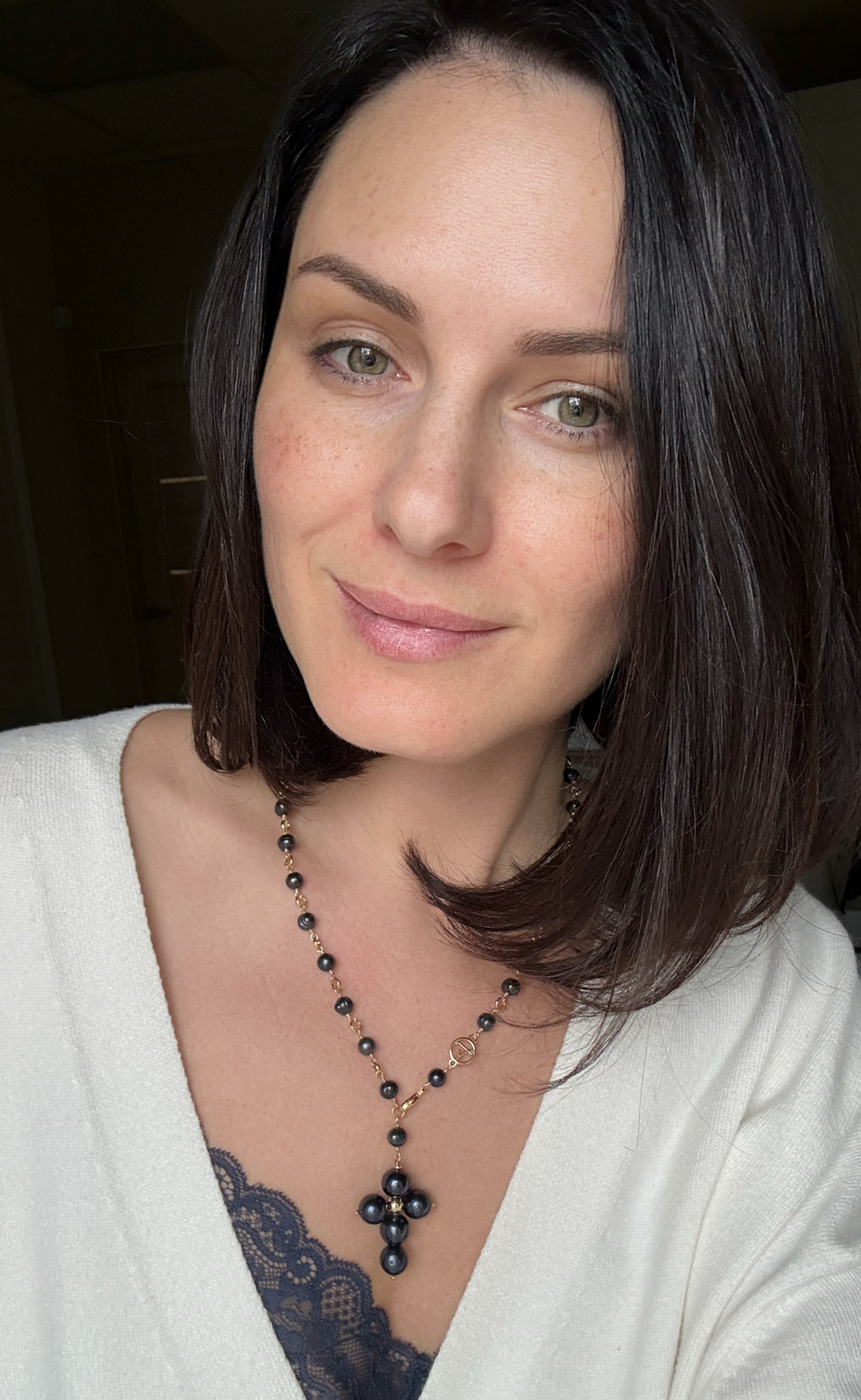 Золотые акценты добавляют тепла и роскоши, а форма креста символизирует гармонию между земным и духовным, женственностью и стойкостью.