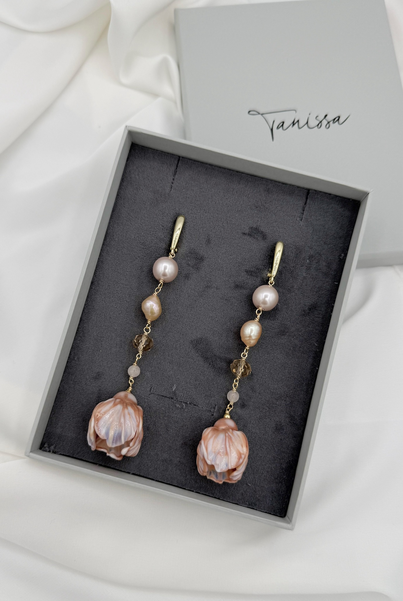 Материалы: лемпворк цветы ручной работы, фурнитура латунь с позолотой