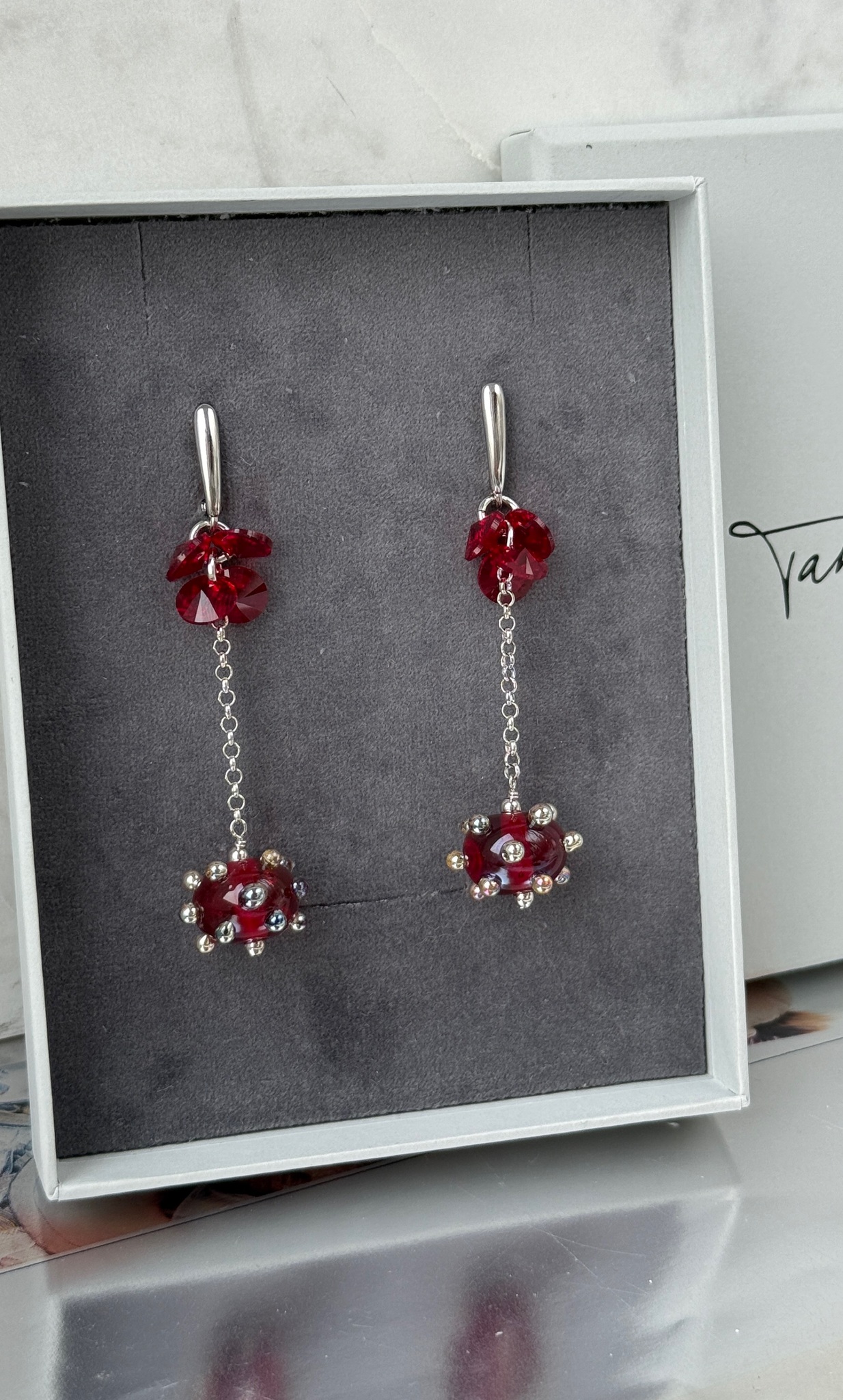 Материалы: кристаллы Swarovski, бусины лемпворк ручной работы, фурнитура с родиевым покрытием